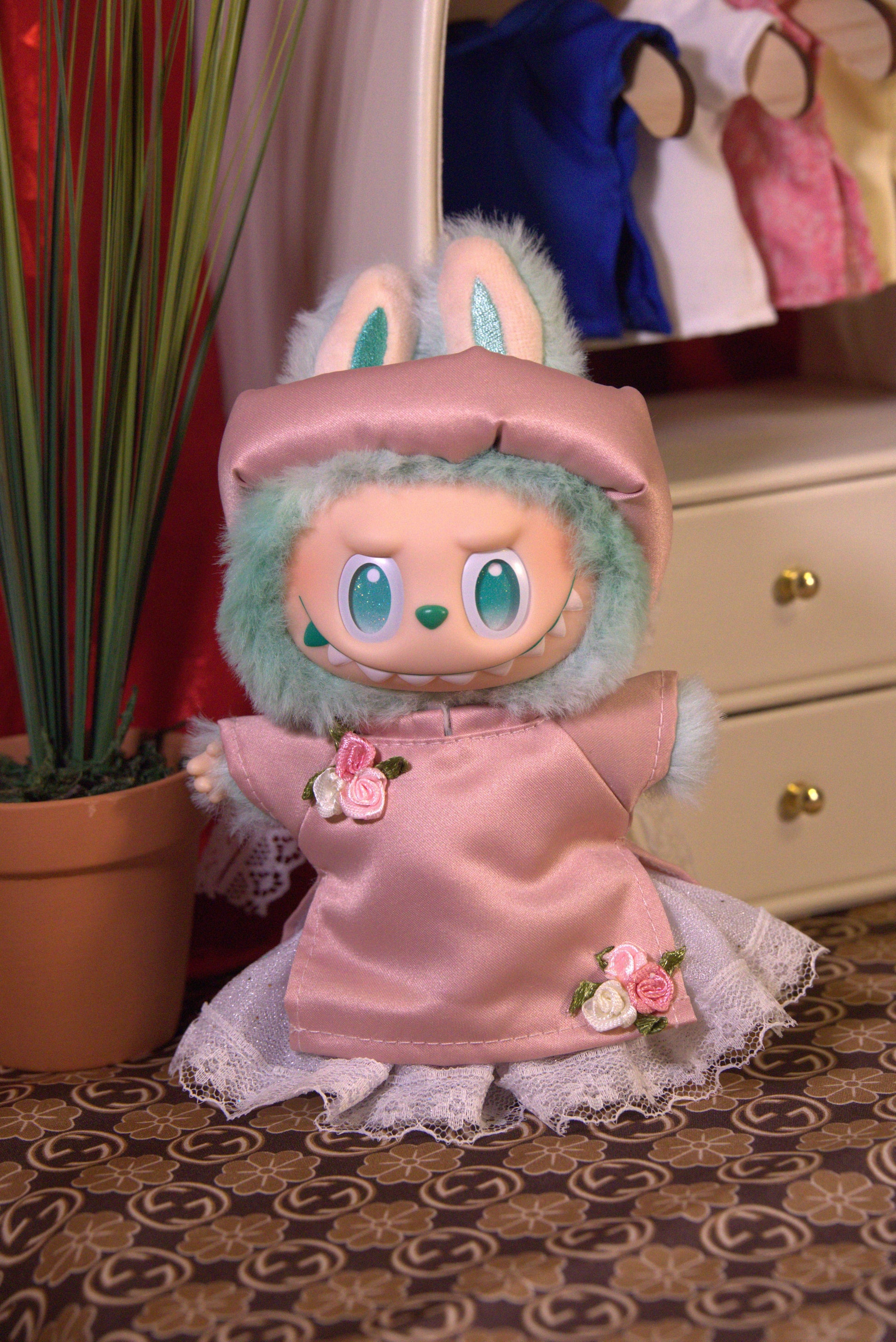 Softly radiant and full of charm, the Pink Spring Blossom Miniature Áo Dài Set is designed for 17cm dolls like Labubu who shine with gentle beauty. This lovely ensemble celebrates the innocence of springtime and the grace woven into Vietnamese heritage.