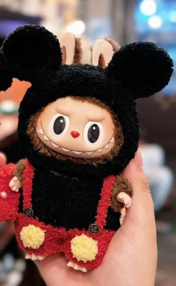 Bring home some classic cartoon magic with this charming black mouse outfit, complete with iconic red pants and yellow suspenders, perfectly tailored for your favorite 17cm art doll.
